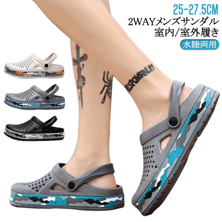 | 2way メンズサンダル 室内/室外履き 【柔軟性】軽量で合成樹脂の材料でクッション性がよく、靴の甲、靴底、ベルトの部分全てにおいて柔軟性があって、痛くならないで履いていける、マリーンシューズとしても履ける。柔らかく高い弾力性もある軽量なフットベッド 【通気性】 通気性に優れた「メッシュ」デザインで、360°循環通気を実現し!足を常に涼しく保つ 【履きやすさ】歩きやすく、つま先上がりの形状でありながら、かかとがないのでサッと履けて脱ぎ履きも楽チン! 【着用2way!】 スリッパ + サンダル両用のシューズ、軽量で通気性バツグン!持ち運びやすい、超便利!" | |