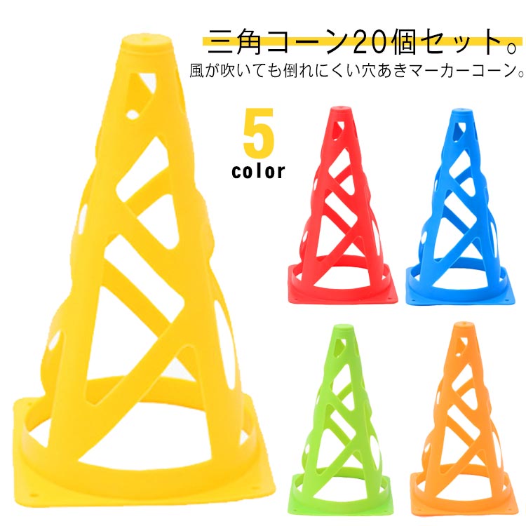 | 三角コーン20個セット。風が吹いても倒れにくい穴あきマーカーコーン。 耐久性と柔軟性のあるPE素材で、蹴ったり踏んだりしても割れません。 穴が開いているので風が吹いても倒れにくいデザインになっています。 屋内外での訓練、敏捷性訓練、スピード訓練のための素晴らしいスポーツトレーニングアイテム。 サッカー、サッカー、バスケットボール、ゲーム、パーティー、イベント、子供の遊び、自転車障害コース、オートバイトレーニング、犬のトレーニング、馬のトレーニングなどに最適です。 | |