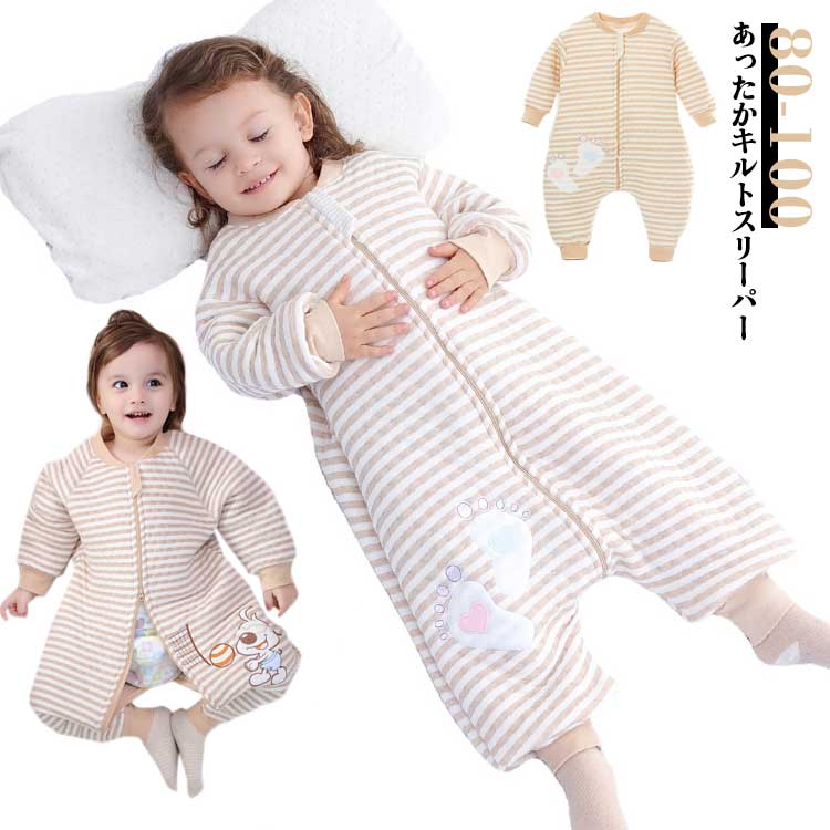 スリーパー 長袖 着る寝袋 中綿入り キルティング 袖付きスリーパー ジップアップ カバーオール 前開き パジャマ ベビー 赤ちゃん 新生児 キッズ