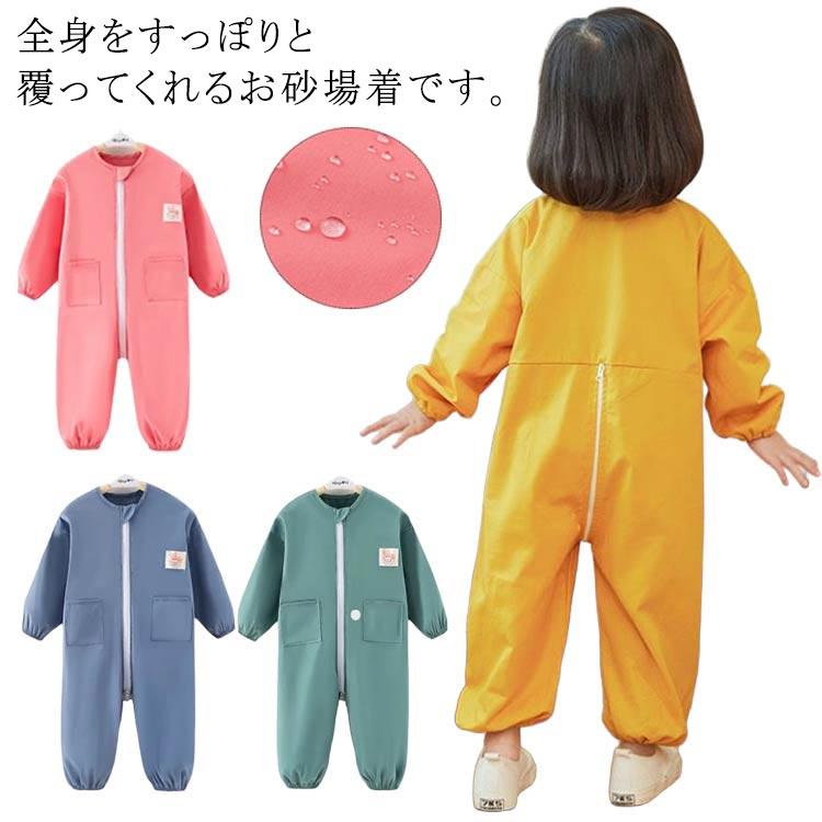 | 全身をすっぽりと覆ってくれるお砂場着です。お洋服の汚れを気にせずたくさん遊べるオーバーオールタイププレイウェア。 袖口&裾口がゴム仕様になって、泥や砂の侵入を防ぐ。 水を弾きやすく、汚れも付きにくい撥水加工生地を使用し、砂場遊び、泥遊び、水遊びなど時、お洋服を砂・土・水滴から守ります。 ダブルファスナ付き、着脱が簡単。 遊びの前に服の上から着用すればOK。 汚れてもお手入れしやすく、食事、お絵描きはもちろん、泥や砂場、水遊びシーンにも活躍間違いなし。 | |