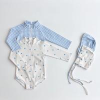 | 韓国風 女の子 ワンピース水着 水遊びもおしゃれに♪ ベビー向けラブリーなドット・チェック柄スイムウェア お揃いのスイムキャップ付き 統一感のあるデザインでさらに可愛く日差し対策! ワンタッチで着脱できるフロントジップ 長袖デザインでしっかり日焼け対策 サラッと速乾・軽量素材 濡れてもすぐ乾くから、冷えにくく快適◎ | |