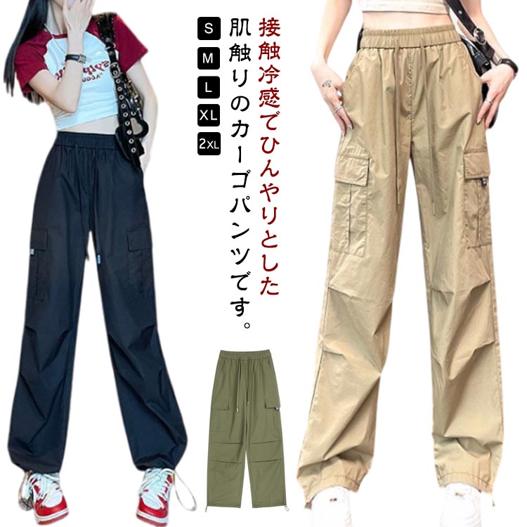 カーゴパンツ 接触冷感 レディース 春 夏 秋 涼しい ロングパンツ ワイドパンツ 春夏 秋服 UVカット 紫外線対策 薄手 速乾 ボトムス ゆったり