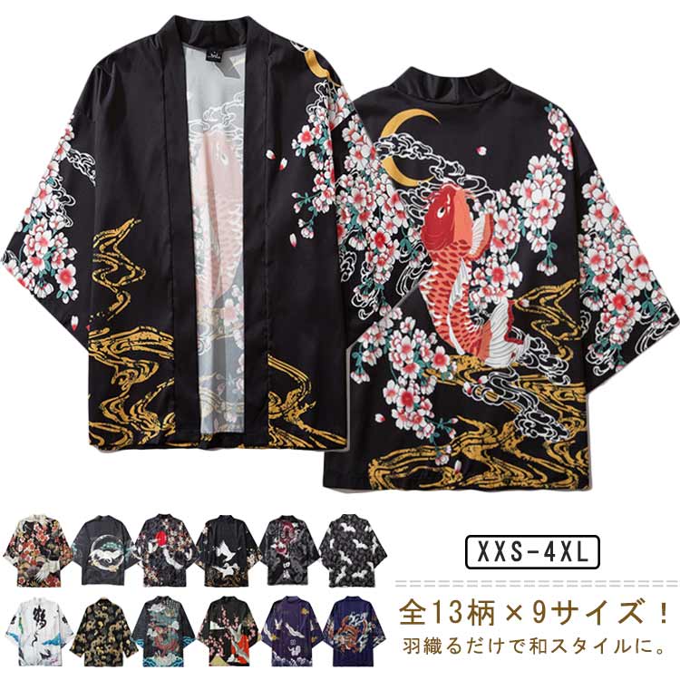 | 全13柄×9サイズ!羽織るだけで和スタイルに。 和装の法被をモダンなさっと羽織れるカーディガン風にアレンジしたファッションアイテムです。 古風和柄を入れることで、粋を演出し、はっぴを着る楽しみ、遊びごころを大切にしています。 サラサラ清涼感のある生地、これからの季節には手放せない。 夏のリラックスタイムに♪イベントに・普段着にも♪ 夏のuv対策や冷房対策にもピッタリの一枚。 | |
