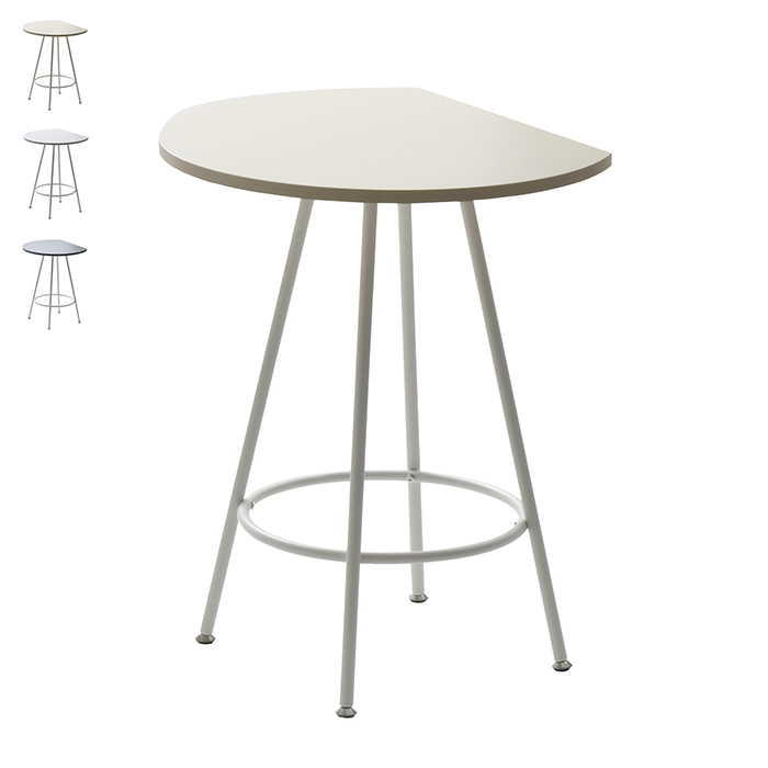 空間に柔らかみを与える円形天板の一部をカットする事で、壁付け設置を可能にし、省スペースを実現したカフェテーブルです。天板の中央部から放射上に伸びた4本の脚は安定性とスタイリッシュな印象をプラスします。