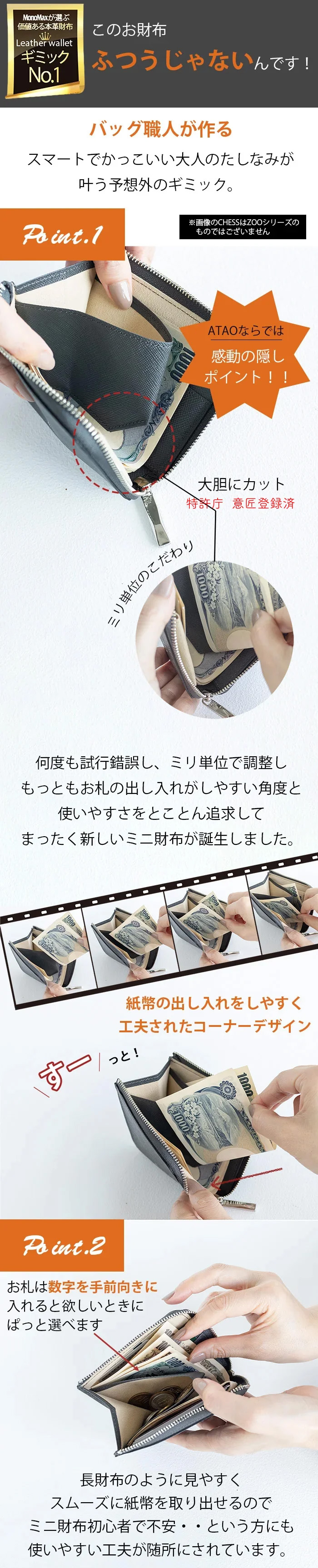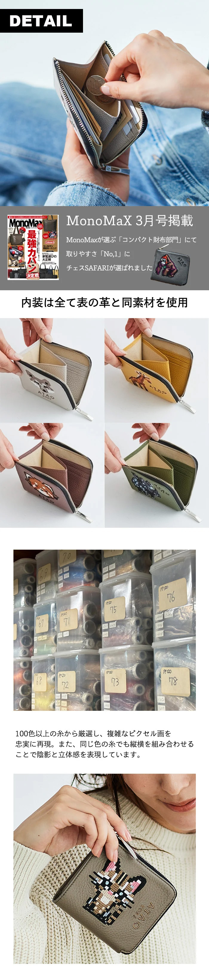 【ATAO公式】チェス・SAFARI|ATAO18周年記念|SAFARIシリーズ|チェス(CHESS)|ミニ財布|刺繍|日本製|手のひらサイズのミニ財布|ユニセックス|人気ミニ財布|ポケットサイズ|牛革|春財布|秋財布|実り財布|アニマルデザイン|撥水レザー|ジェンダーフリー