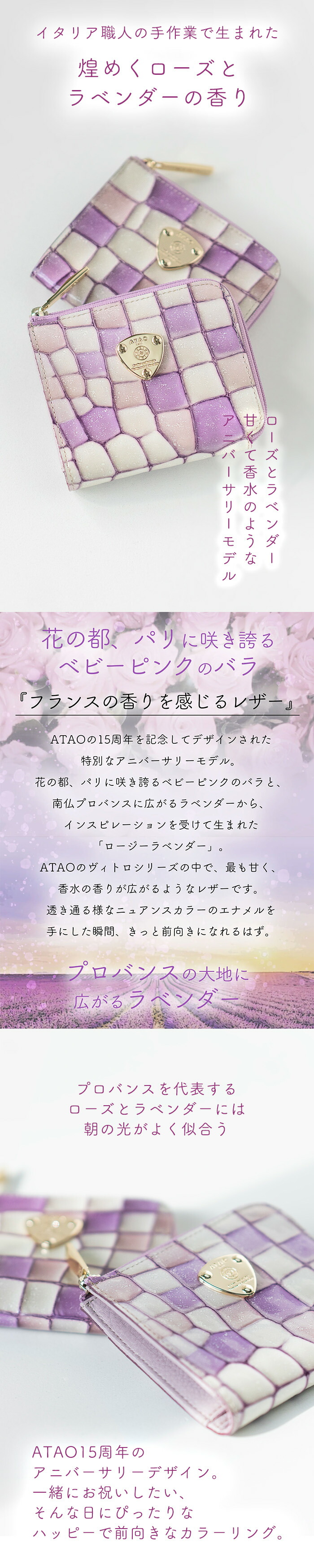 ATAO公式 ATAOのミニ財布 milimo(ミリモ)ヴィトロ ロージーラベンダー キャッシュレス対応 アタオオリジナルのイタリアンステンドグラスレザー エナメル 日本製
