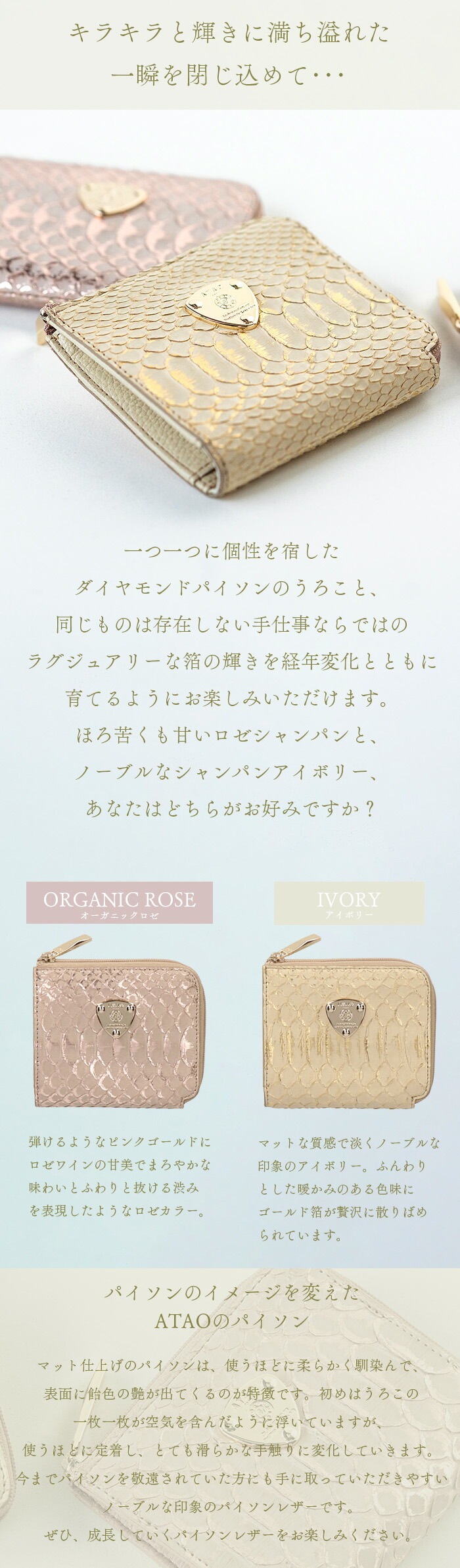 ATAO公式ATAOのミニ財布 milimo(ミリモ) パイソンHAKU パイソンリュクス キャッシュレス対応 幸運を呼び込む パイソン シャンパン ロゼ 日本製 春財布 秋財布