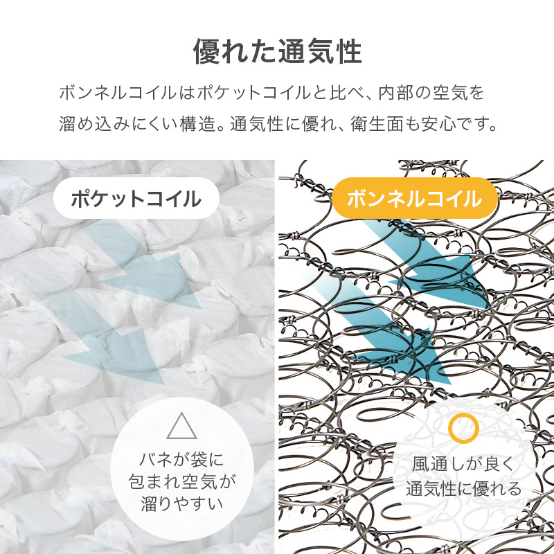 マット側面は通気性の良いメッシュ素材なので、マット内部の熱や湿気を放出し快適で清潔な状態をキープします。