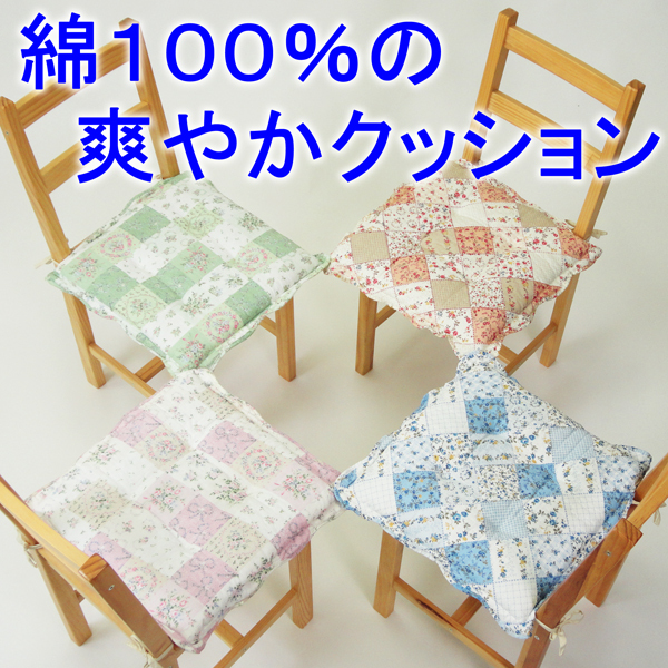 シートクッション チェアパッド 綿100% コットン 紐付き 花柄 フリル付き