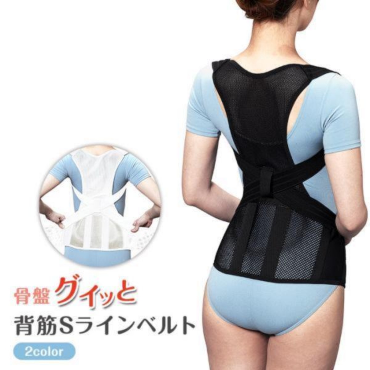 骨盤固定と背筋矯正を同事に行う魔法のSラインベルト骨盤を固定して、背筋きゅ〜っと伸ばしてくれます。