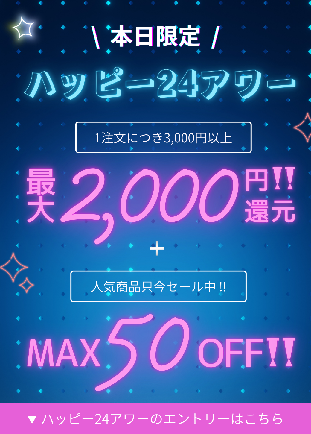 ● 合計3,000円以上で2,000円還元!