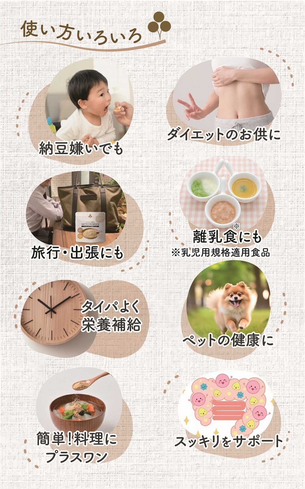 | 納豆パウダー 粉なっとう 粉納豆 こな納豆 ネバネバしない 赤ちゃん 離乳食 犬 納豆菌 粉末 国産大豆 無添加 ナットウキナーゼ 納豆パウダー離乳食 | |
