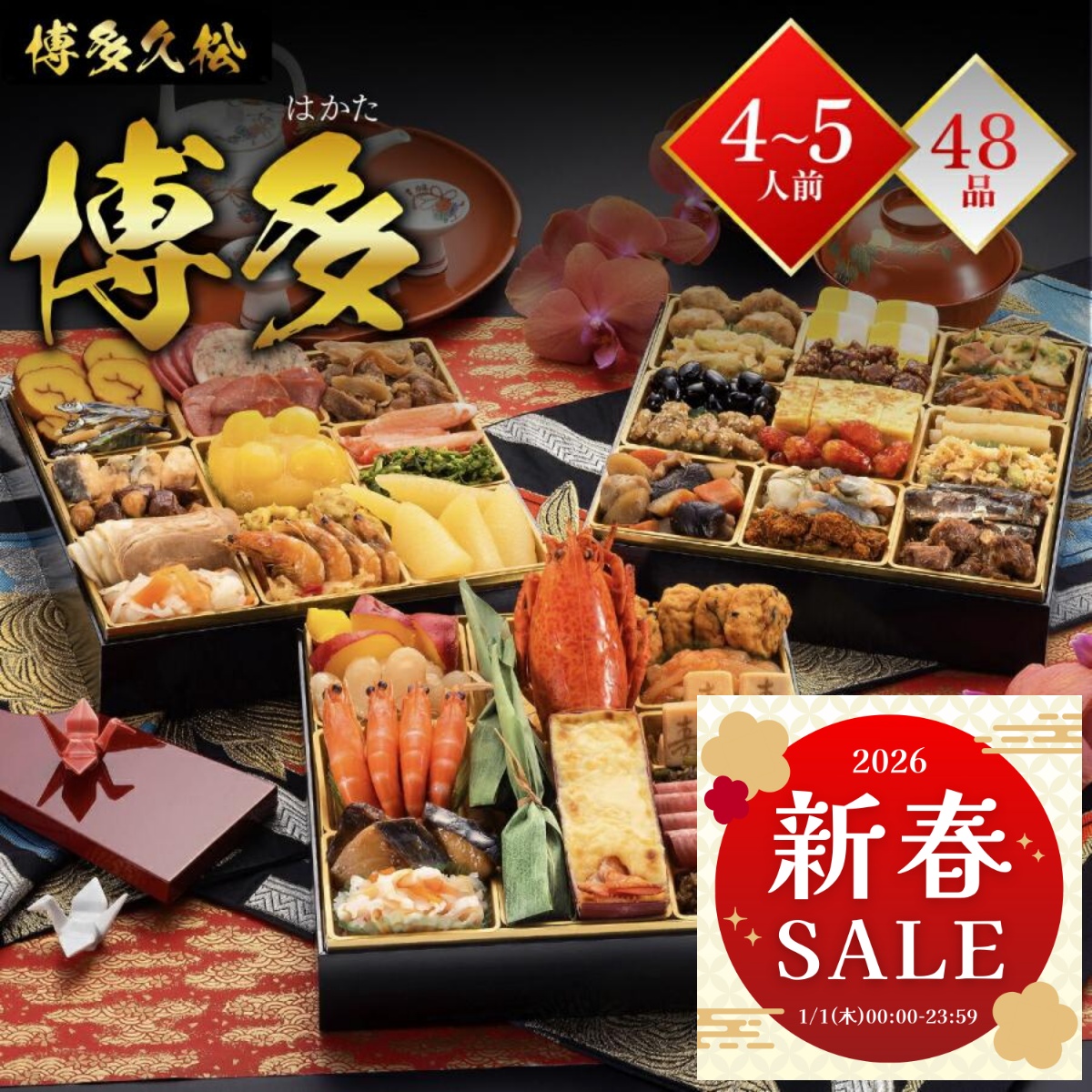 ◆ 関連キーワード おせち 2026おせち/和洋折衷/三段重/特大8寸/博多久松/お正月料理/おせち料理/4〜5人前/家族/冷凍おせち/ギフト/お年賀/新年/お祝い