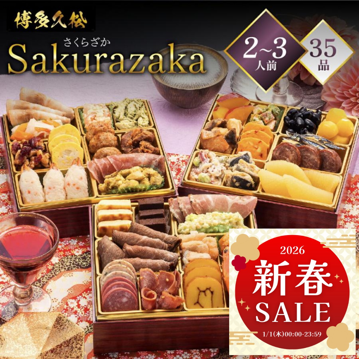 ◆ 関連キーワード 洋風おせち/Sakurazaka/三段重/6.5寸/2〜3人前/洋風料理/博多久松/冷凍おせち/正月料理/家族/新年/ギフト