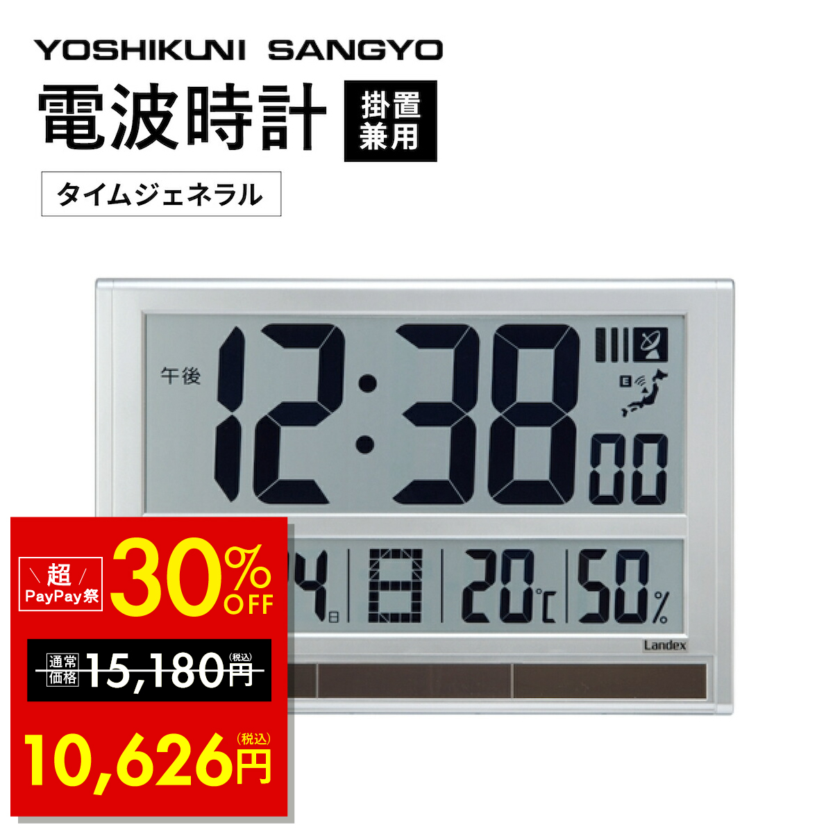 デジタル電波時計 ハイブリッドソーラー ●本体サイズ約縦27cm幅40cm、大型ワイド液晶表示のデジタル掛け時計です。