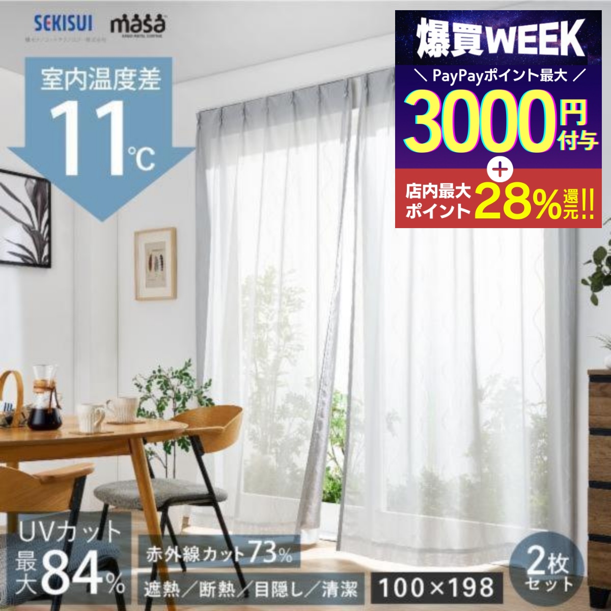 ■商品特徴 通常のカーテンと同様に使うだけで日差しと熱、紫外線を大幅にカットしてくれる『遮熱レースカーテン』です。