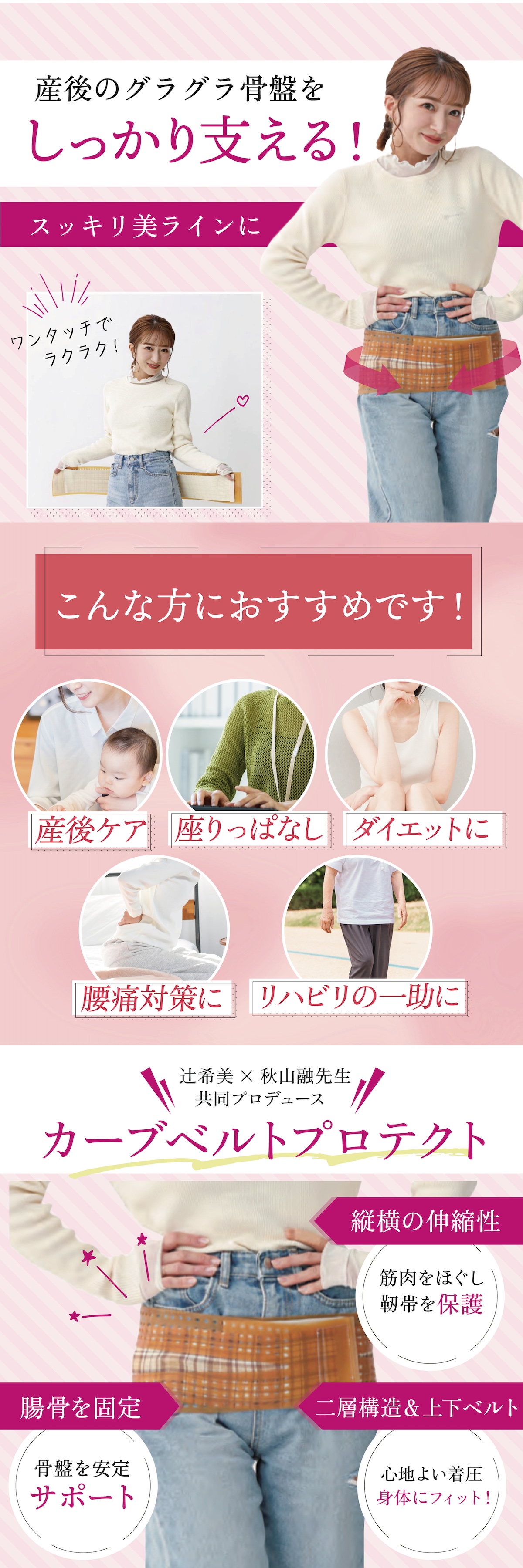 お客様の声から再販が実現した「カーブベルトプロテクト」カーブベルトプロテクトは腸骨をしっかりフォローし、筋肉バランスを整え、バランスの取れた正しいカラダへ補正します。