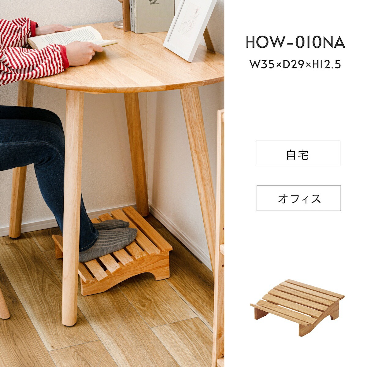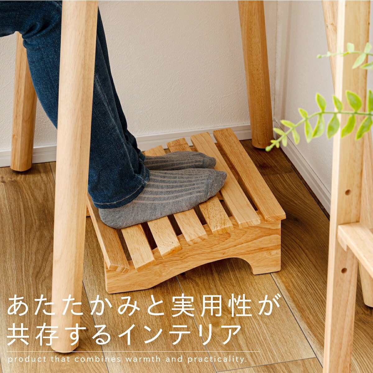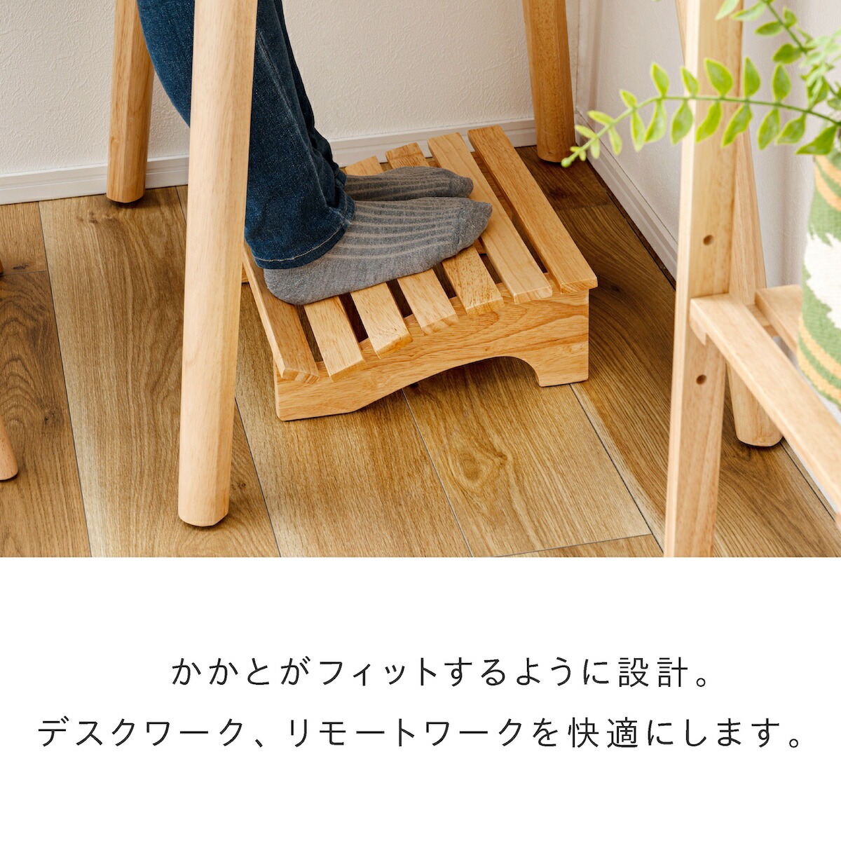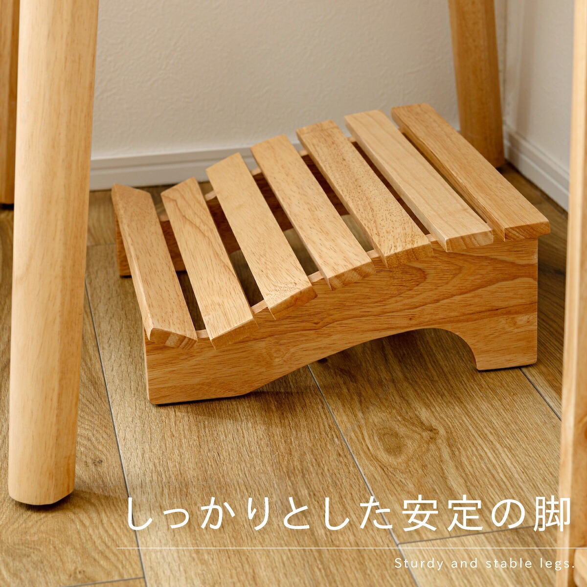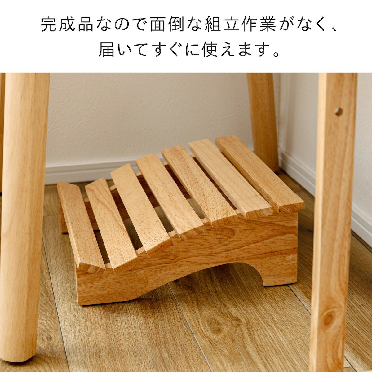 ●天然木(ラバーウッド)を使用したフットレスト(足置き)。