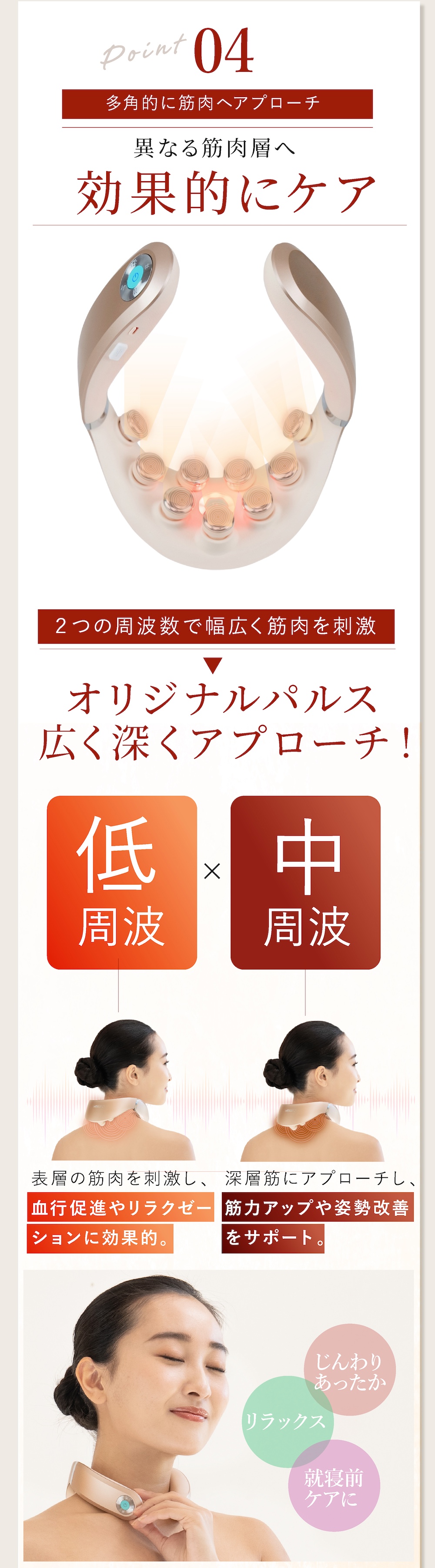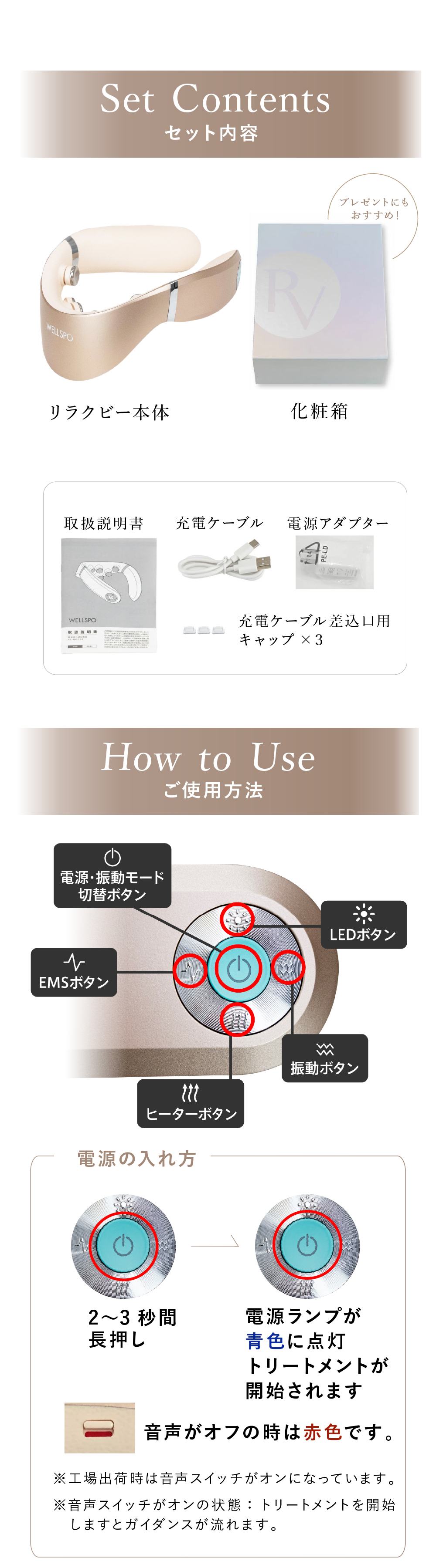 【使用上の注意】 ●本製品は首専用です。指定の部位・方法以外で使用しないでください。