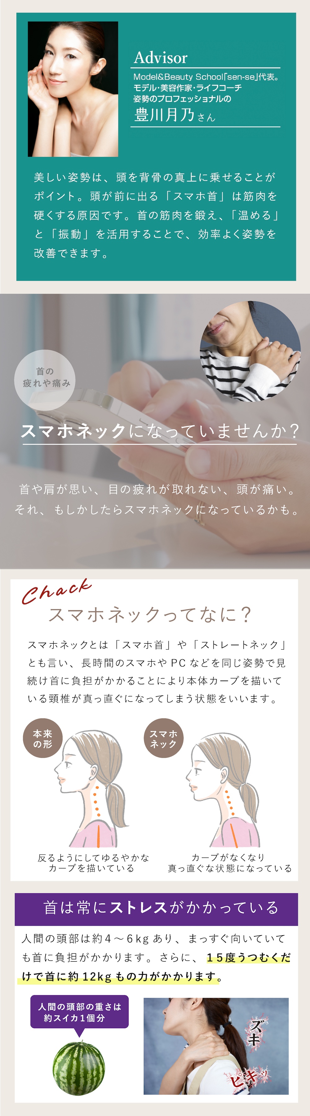 〈首トレするとこんないいことが!〉 ◇重い頭をしっかり支えられるから、背骨の上で頭を支えられるから姿勢がキレイに。