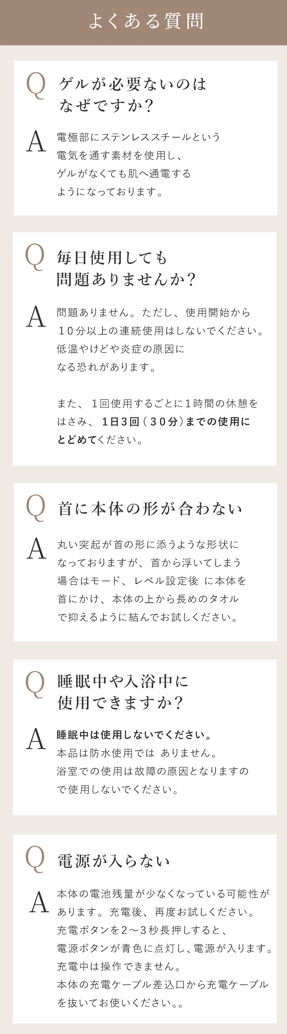 ●使用中、首の周りが熱く感じたら我慢せずに使用を中止してください。