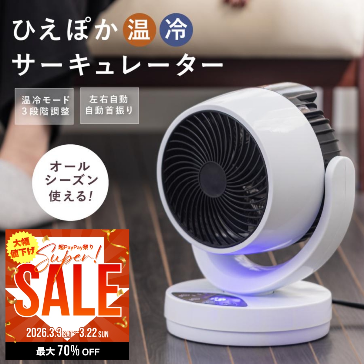 | 商品名 | 1台3役 温冷風機(温風ヒーター/冷風/衣類乾燥) |