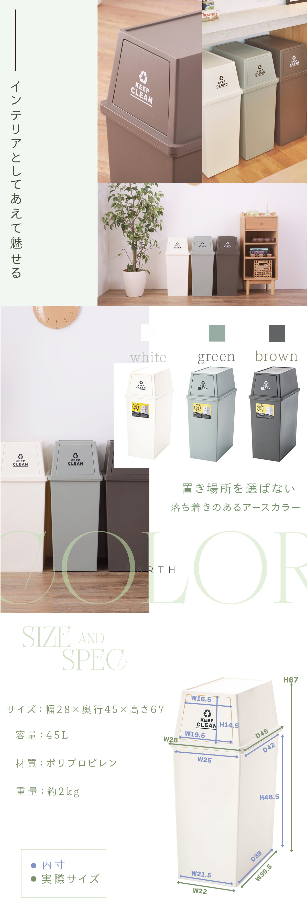 ゴミ箱 45リットル おしゃれ 分別 スリム ごみ箱 ダストボックス 蓋付きゴミ箱 キッチン 45l スタッキングペール LFS-761 大容量 爆買