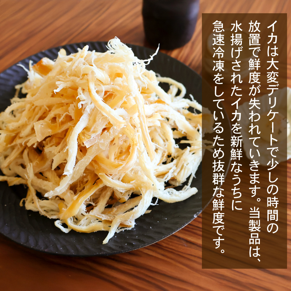 | 原材料 | いか(中国)、砂糖、食塩、醸造酢/ソルビトール、酒精、酸味料、調味料(アミノ酸等)、メタリン酸Na、甘味料(甘草・ステビア)、保存料(ソルビン酸K)、(一部にいかを含む) |