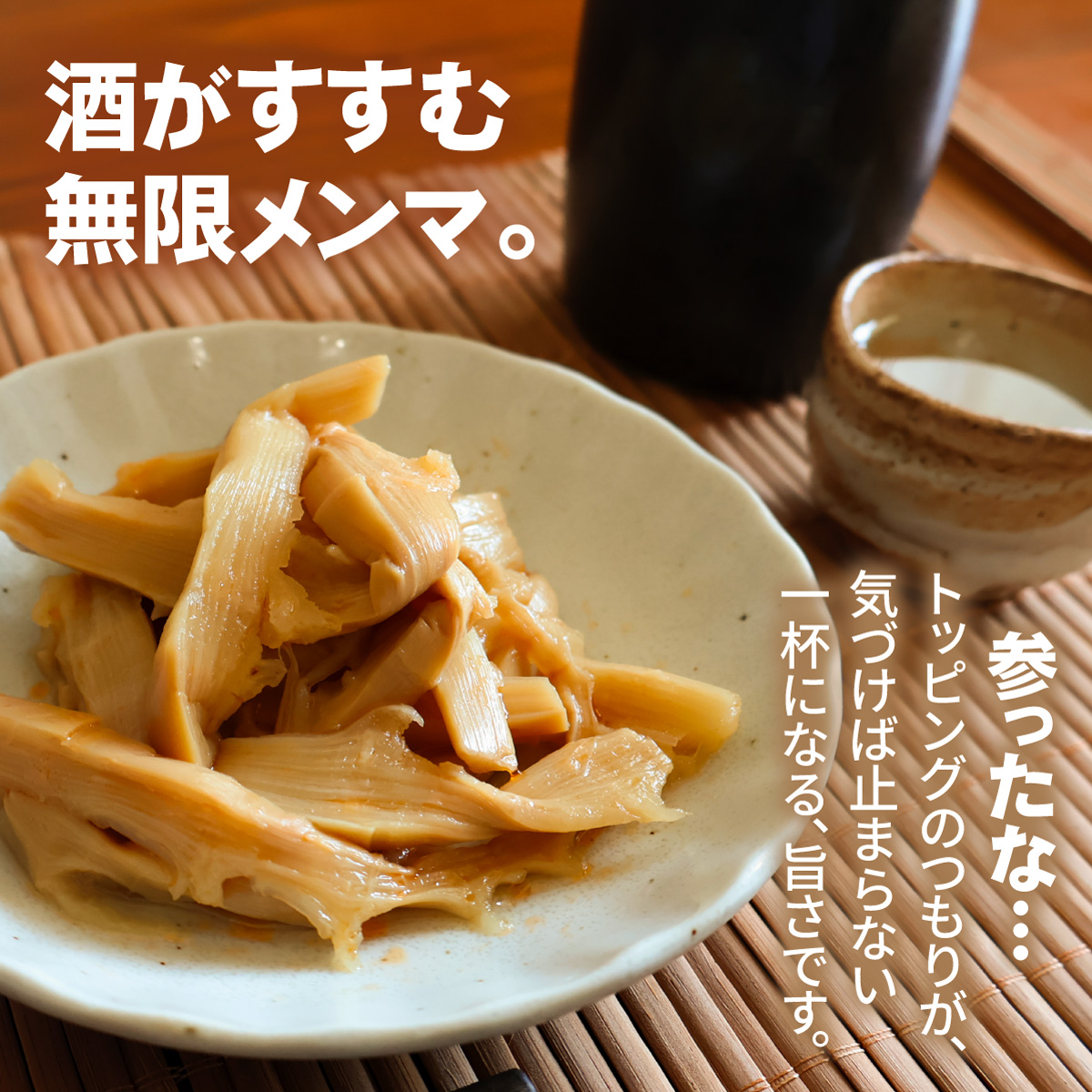 【あっさり醤油味メンマ】メンマ(中国)、醤油、食塩、砂糖、ぶどう糖果糖液 糖香、辛料調味料(アミノ酸等)、酸化防止剤(V.C)、pH調整剤甘味料(ステビア)カラメル【屋台風極太メンマ】完全発酵乾燥メンマ(中国)、醤油、植物油脂、砂糖、オリゴ糖、醸造調味料、食塩、香辛料、調味料(アミノ酸等)、酸化防止剤(V.C)、pH調整剤、甘味料(スクラロース)、原材料の一部に小麦、大豆、ゼラチンを含む【ピリ辛中華味穂先メンマ】完全発酵乾燥メンマ(中国)、醤油、植物油脂、食塩、砂糖、オリゴ糖、香辛料、調味料(アミノ酸等)、酸化防止剤(V.C)、pH調整剤、甘味料(スクラロース)、着色料(ビタミンB2)、 原材料の一部に小麦、大豆、ゼラチンを含む