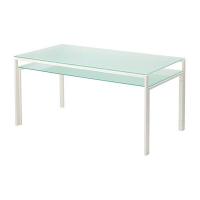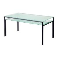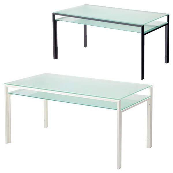 スチール製フレームの棚付ガラステーブルはモダンでシャープなイメージ。デザイナーズチェア等のスタイリッシュなダイニングチェアとコーディネートしやすいシンプルデザイン。天板・棚板に半透明のフロストガラスを使用しています。