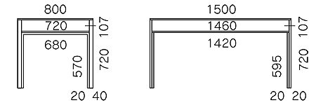 ●サイズ:W1500×D800×H720mm(天板〜棚板117mm)