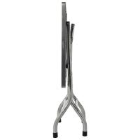 工業的な質感とタフさを備えたステンレス製テーブル。設置したままその場で天板を折りたためる、安定性の高いクロスレッグタイプ。使わない時はコンパクトに収納できます。ステンレスの表面にランダムな研磨模様を施したバイブレーション仕上げは、つや消しのような落ち着きと重厚感を感じさせます。スタイリッシュな存在感と利便性は、ダイニングや書斎、ガレージなど幅広いシーンで活躍します。