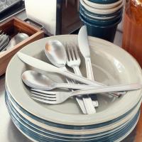 軽量化のための"くぼみ"がそのままキービジュアルとなったカトラリーシリーズ。無駄な装飾の無いシンプルなデザインの中に控えめながらも他にないディテールを感じさせ、食卓で存在感を放ちます。