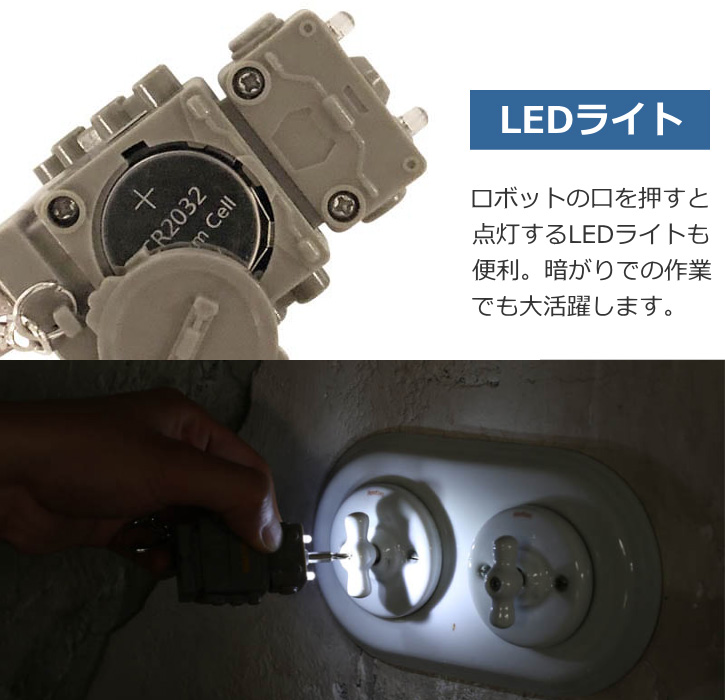工具セット 携帯用ミニドライバーセット ダルトン ツール キー チェーン "ロボット" LEDライト付