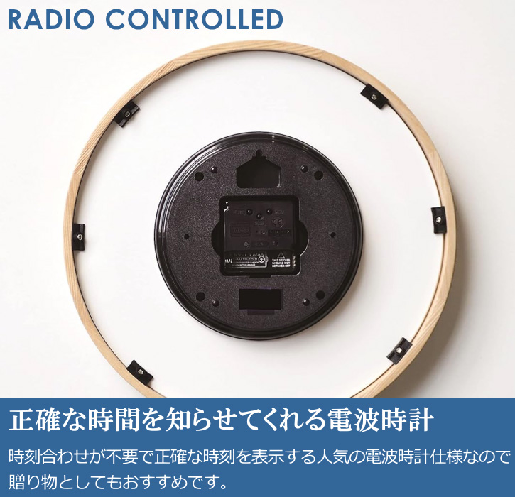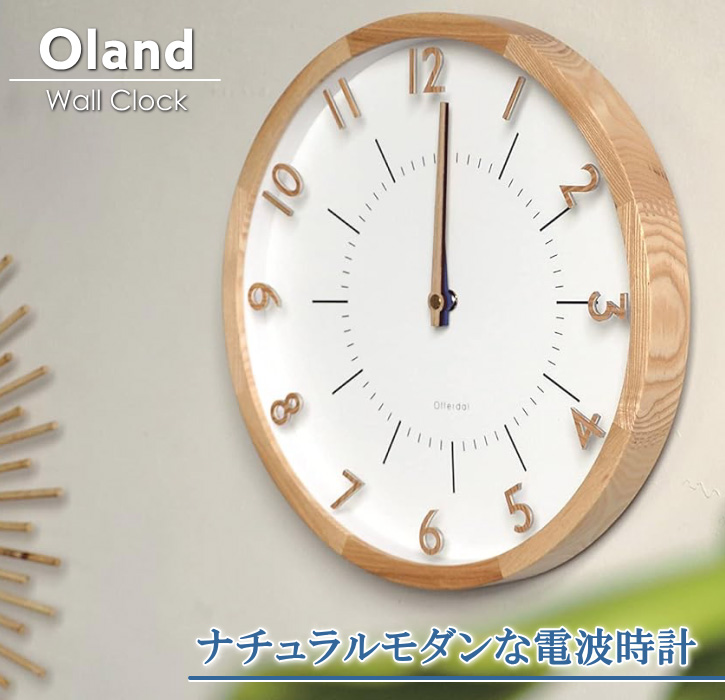 壁掛け時計 ウォールクロック 電波時計 Oland 木製 直径30cm 北欧 ナチュラル シンプル 和風 モダン