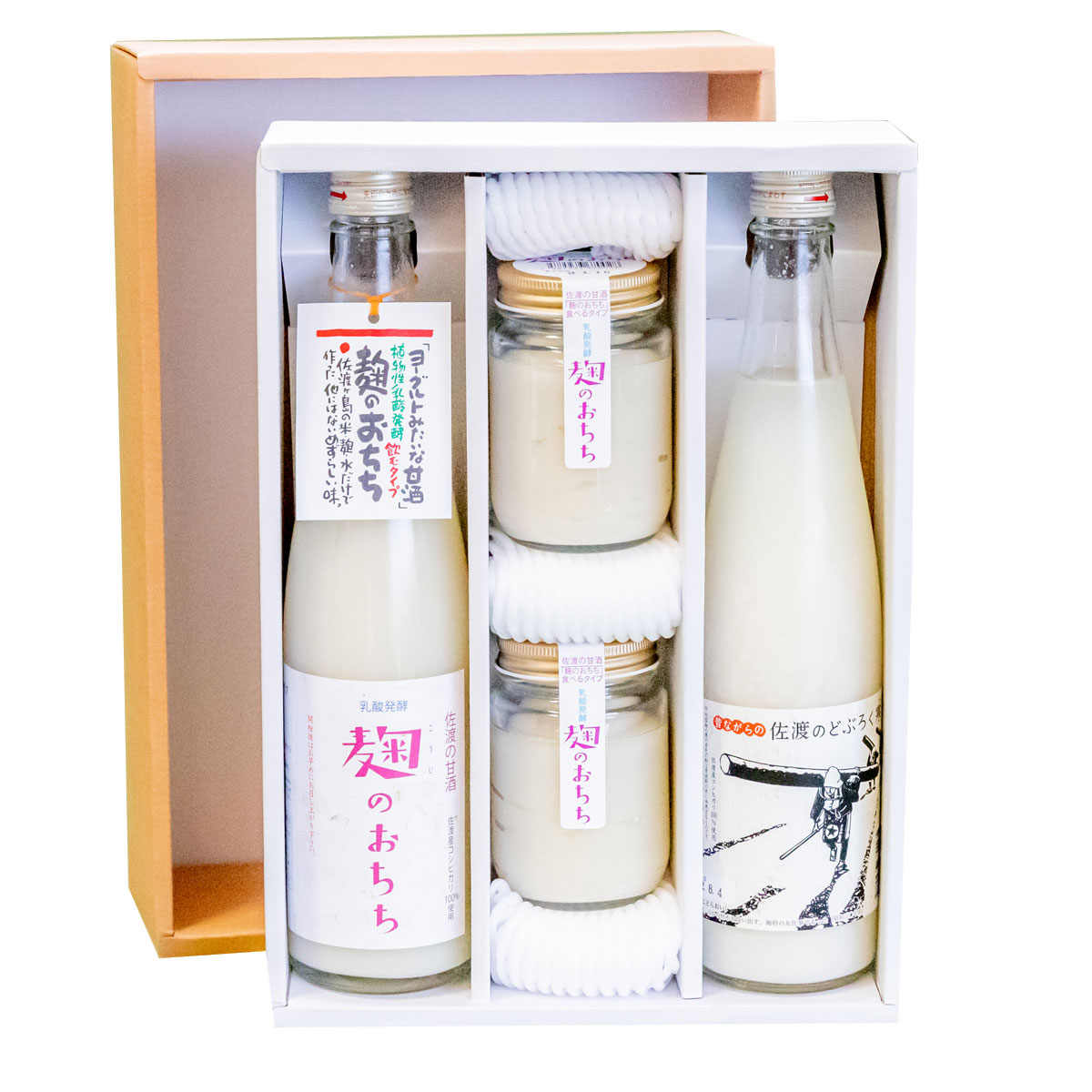 佐渡の甘酒どぶろくセット 麹のおちち 飲むタイプ 480ml 1本 食べるタイプ 190g 2個 昔ながらの佐渡のどぶろく12度 480ml 1本