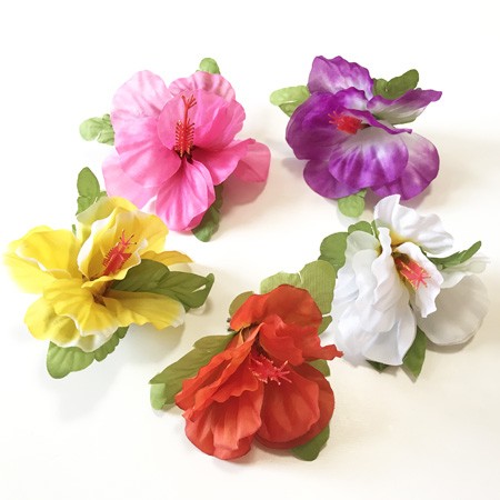 へアークリップ ハイビスカス〈 オレンジ イエロー ホワイト ピンク パープル 〉ヘアーピン ハワイアン フラダンス アクセ 造花 髪飾り ヘアクリップ
