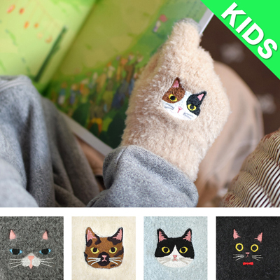 スマホ 手袋 キッズ アニマル ミケネコ チャコールネコ サビネコ ハチワレ サビネコ リボンネコ 送料無料 スマホ対応 秋冬 防寒 通園 通学 三毛 猫 黒 ねこ