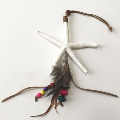 カラフルなウッドビーズとフェザーがついたヒトデのオーナメント♪