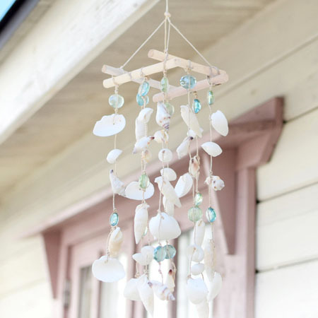 ハワイアンテイストな素材がいっぱい詰まったようなシェルとガラスビーズのチャイム♪