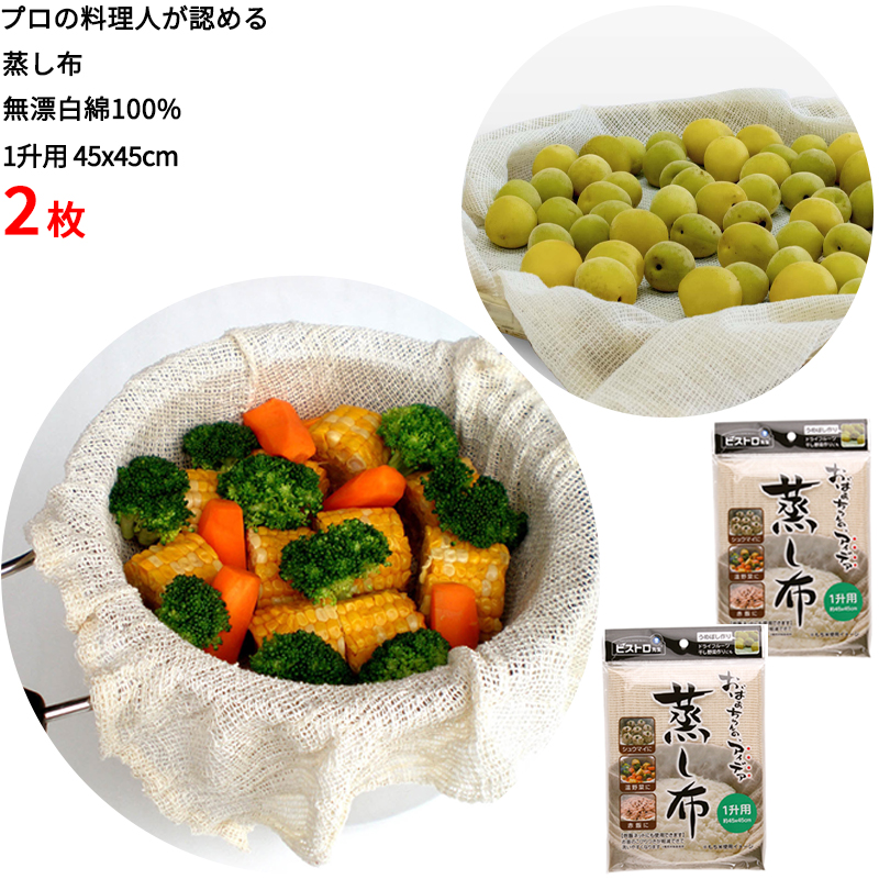 【こだわり品質】蒸し布 1升用45x45cm 2枚 料理布せいろ 蒸し器 茶碗蒸し 赤飯 炊飯 ネット 梅干し作り 美味しく蒸し上がる