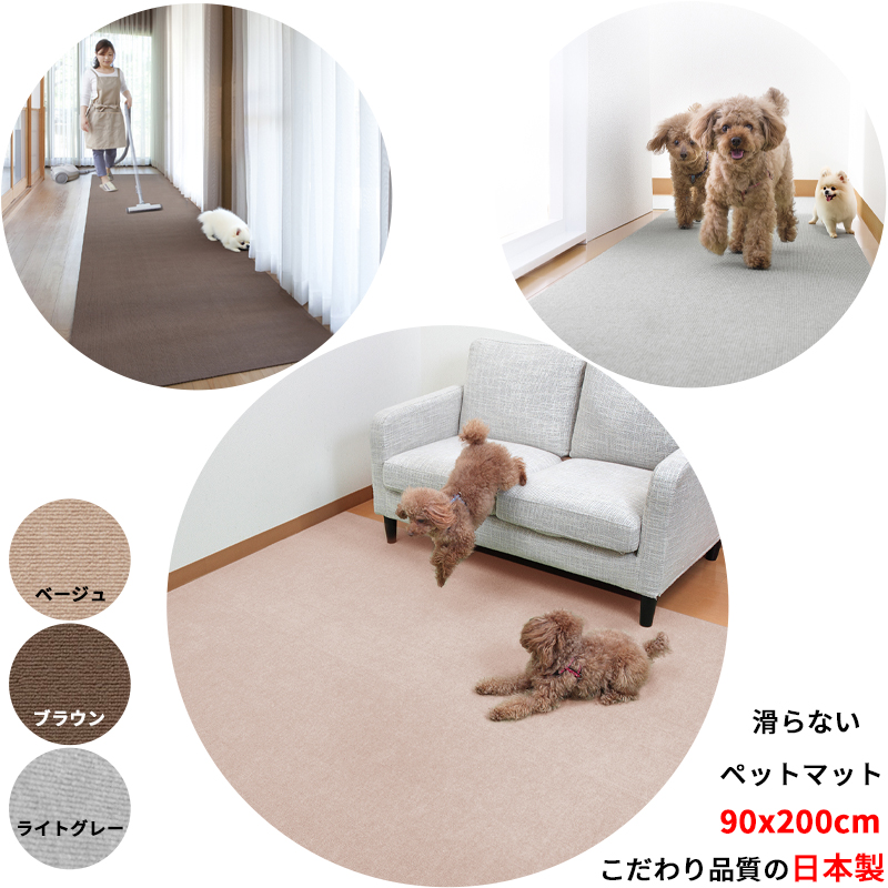 【日本製 滑り防止】ペットマット 90×200cm 厚み約4mm 滑り止め 犬用マット 滑らない 足腰 保護 負担 軽減 撥水 ロング型 カーペット 消臭 手洗いOK 床暖房対応