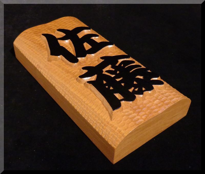 木製表札;縦書き浮き彫り表札で名字のみ、豪華で重厚感のある波状台座タイプでさらに重量感を増した極厚仕様です。文字部の浮彫り厚さも標準の約2倍で風格たっぷり。