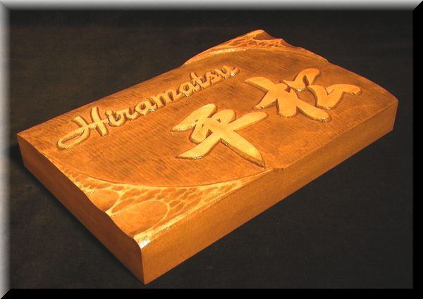 木製デザイン表札;英字+漢字(名字のみ)浮き彫り表札です。