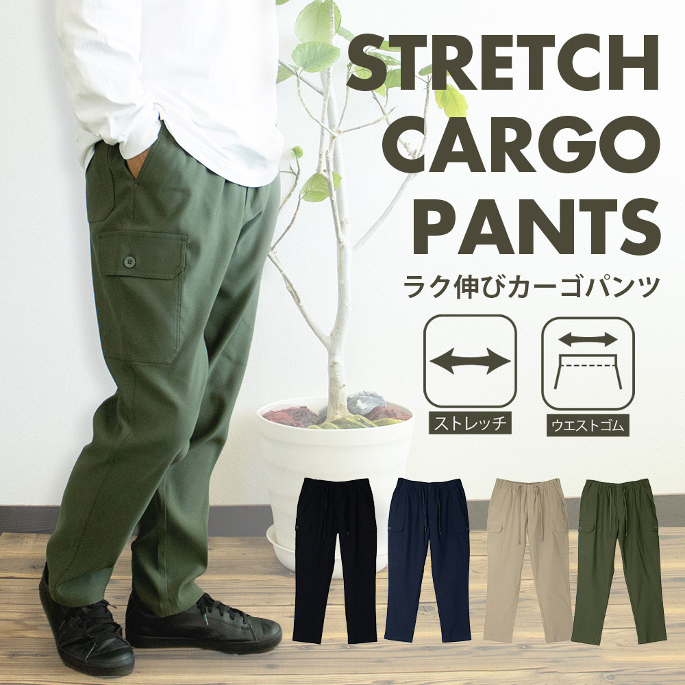 カーゴパンツ メンズ ミリタリーパンツ イージーパンツ ズボン ボトムス テーパードパンツ おしゃれ ワークパンツ ワーク きれいめ オフィス 10代 20代 30代 40代 50代 60代 70代 80代 ユニセックス ロングパンツ 前開きファスナー ウエストゴム ゴム ウエスト紐 軽量 シンプル