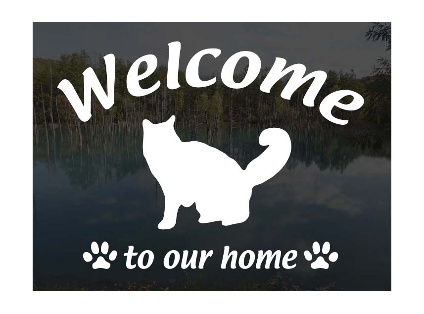 メインクーン (A) Welcome ステッカー 屋外用 ウェルカム いらっしゃいませ 猫 ステッカー シール 玄関ドアガラス等に 切文字 転写ステッカー