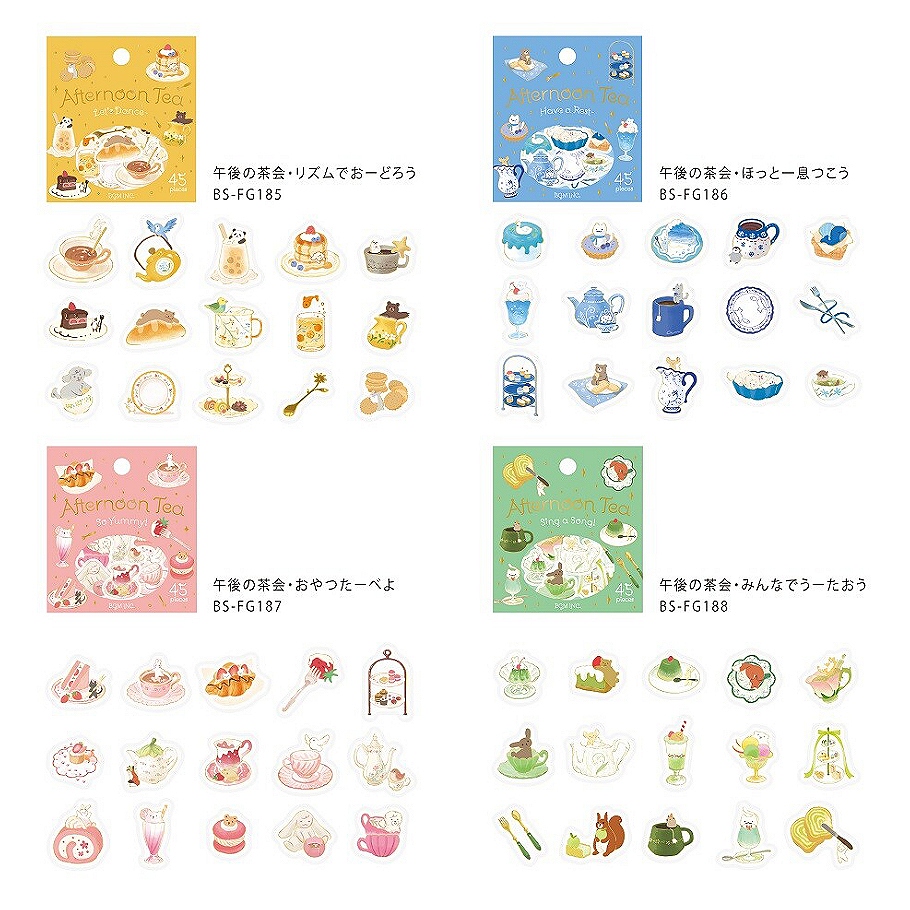 BGM フレークシール 箔押し 午後の茶会 全4種 です。