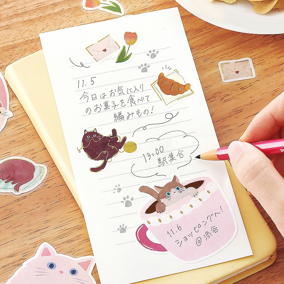 ・手帳や色紙に貼るだけで、ねこたちの優しい世界観が広がる
