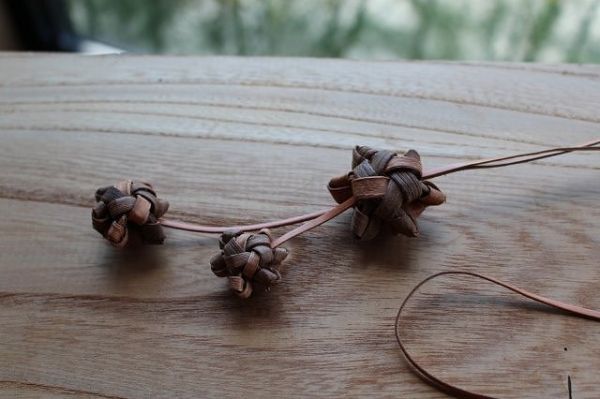花ぶんどを動かして自由に革紐の長さを調節できます。
