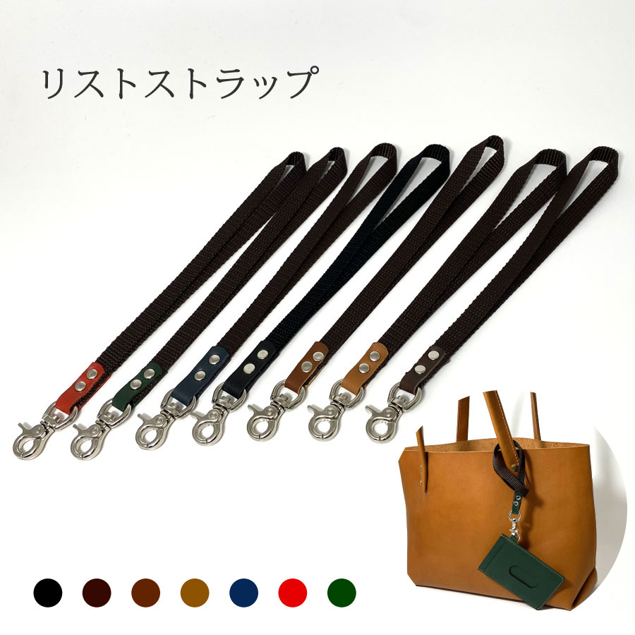 リストストラップ ショートストラップ ナスカン レザー PPテープ 牛革 本革 ホルダー ヌメ革 ハンドメイド 黒 焦茶 茶 紺 赤